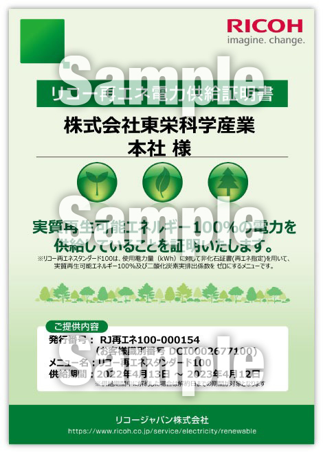 実質再エネ100%、CO2排出量ゼロの環境負荷価値の付いた電力を使用しています。